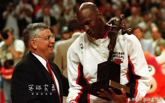 他的5個MVP也是難以超越的一點,1988年是喬丹的第一個MVP,那一年他場均能夠拿下35.0分5.5籃板5.9助攻,全勤出場,命中率高達53.5%。隨后1991年和1992年喬丹則蟬聯了MVP,后三連期間,公牛的戰(zhàn)績分別是72勝、69勝和62勝,以戰(zhàn)績和數據而言喬丹本有可能連續(xù)三年拿下MVP,將MVP數目提高到6個,結果因為卡爾馬龍的存在,喬丹丟失了1997年的MVP。