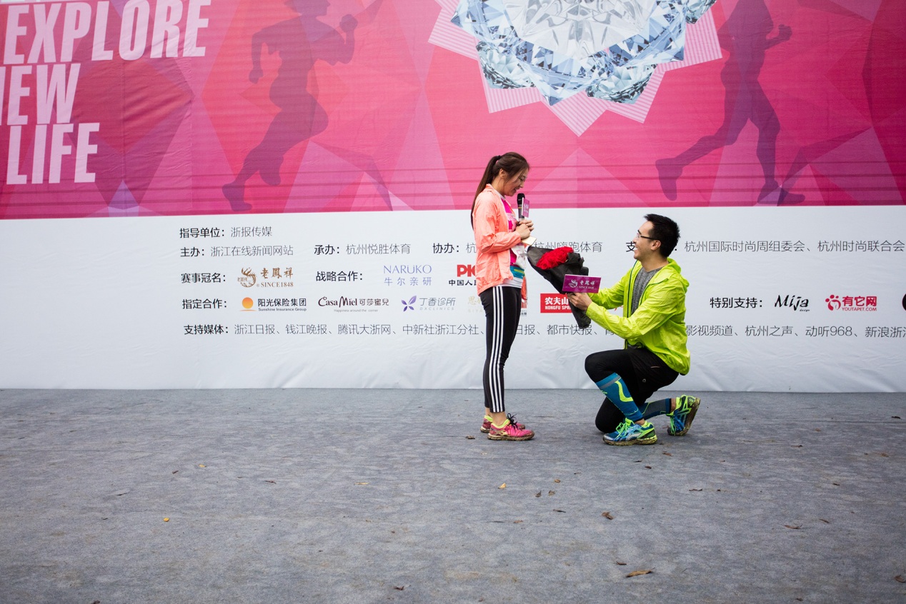 今年的賽道從西湖轉(zhuǎn)移到了錢江新城錢塘江畔的城市陽臺(tái)“網(wǎng)紅跑道”,增加了不少時(shí)尚元素,例如女性專屬服務(wù)營,活力鮮花賽道……比賽中,組委會(huì)將在不同的路段設(shè)置“通關(guān)禮”來刺激選手們的荷爾蒙。在5km處,有嘻哈歌手前來獻(xiàn)唱;在8km處,有嚴(yán)陣以待的型男快閃來收割尖叫。今年,主辦方還放言“為勇敢男生搭臺(tái)”,在9.9km處,男生們只要勇敢說愛,老鳳祥珠寶和杭州國際一線婚紗禮服品牌集合店TheBest圣白,就能助力追愛男生完成一場千人見證的求婚!驚喜不止于此,現(xiàn)場還有“愛上下一秒改變市集”,來觀戰(zhàn)的小伙伴可以在市集中尋找歡樂,另外還有潮到風(fēng)生水起的各類實(shí)物的展示與新銳路演。主辦方透露,在起點(diǎn)和終點(diǎn)還會(huì)有“驚喜大禮”,具體謎底,將隨著日程推進(jìn),在官方報(bào)名渠道一一揭曉。