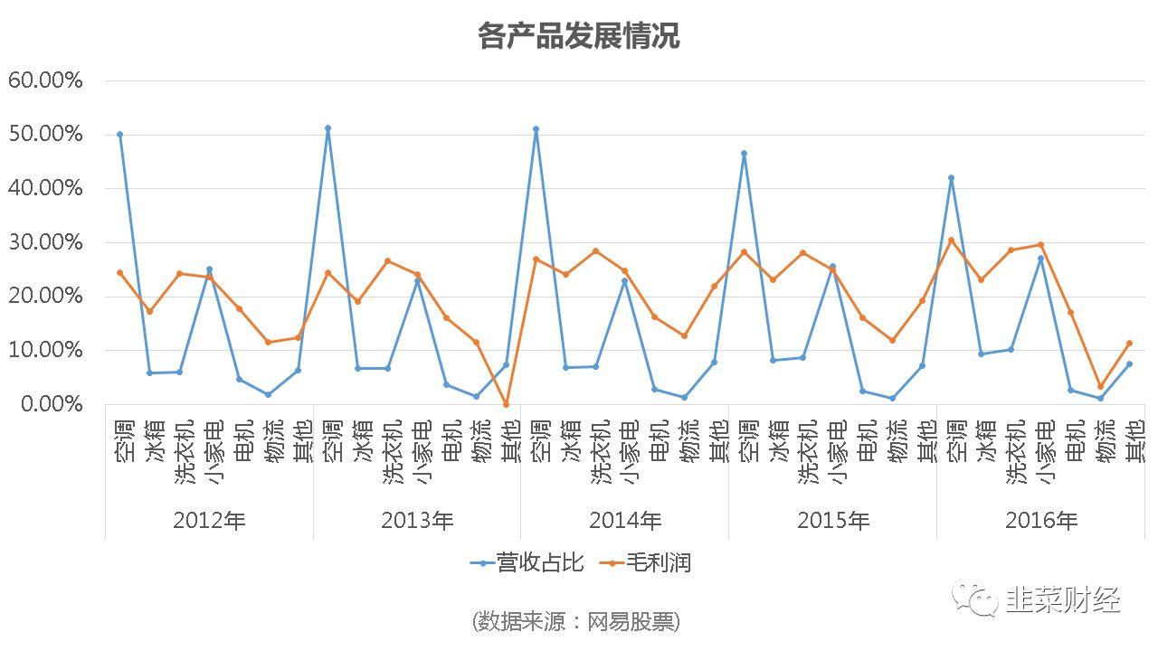 空調已經大勢已去。小家電仍然看好。冰箱洗衣機依托小天鵝等帶來的營收和利潤率增長也很客觀。冰箱洗衣機在五年內,毛利能夠提升5%,也是不錯的表現(xiàn)了。。