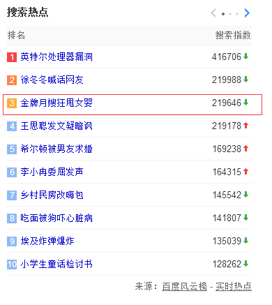 此事件的關(guān)注排名在昨日10點(diǎn)左右已經(jīng)上升到了百度風(fēng)云榜的前3位!
