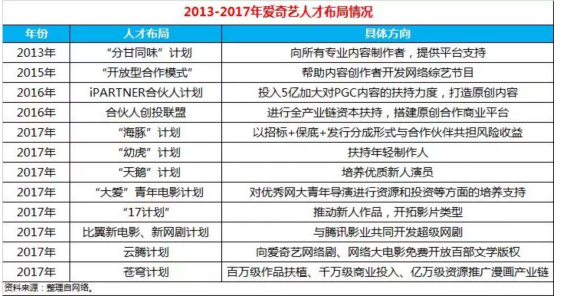 愛奇藝最先貫徹“超級網(wǎng)劇”的概念,注重原創(chuàng)內(nèi)容的開發(fā),因此對人才有著精準的定位和方向,既同各方合伙人展開內(nèi)容產(chǎn)業(yè)鏈的延伸與拓展,將觸角伸向綜藝、PGC、IP作品、動漫產(chǎn)業(yè)鏈,又分別對不同類別的新人人才進行扶持和培育,如演員、制作人、網(wǎng)大導(dǎo)演等等,保持各領(lǐng)域人才兼具且專業(yè)的特性。從長遠來看,愛奇藝人才儲備后勁十足,有待集中爆發(fā)。