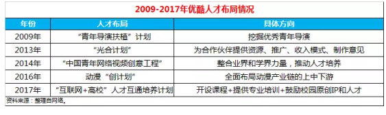 邀請大咖主創(chuàng)成為愛騰優(yōu)人才競爭的重要措施,從長遠來看,有自家的“人才儲備庫”才是長遠之計,在這一點上,三大視頻網(wǎng)站近年來動作頻頻。