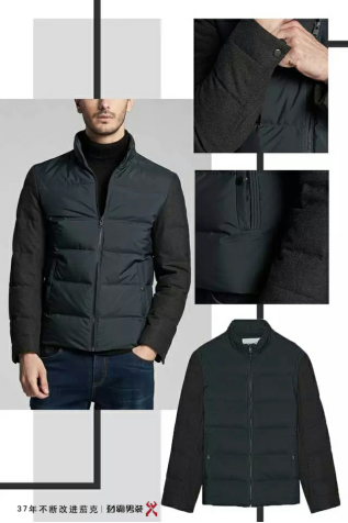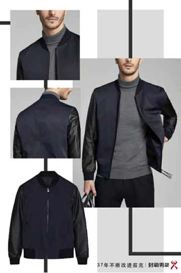 \u00A0\u00A0\u00A0\u00A0短版棒球領(lǐng)茄克,突出年輕活力和無(wú)限動(dòng)力。采用肌理感面料與仿皮感面料拼接設(shè)計(jì),簡(jiǎn)約易于搭配。挺括面料搭配時(shí)髦廓形,讓茄客先生們的睿智風(fēng)貌一覽無(wú)余。