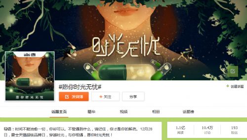 跨界品牌聯(lián)合傳播是此次雷士天貓超級品牌日的一大亮點,與以往邀請微博大V推廣方式不同的是,雷士照明依托天貓超級品牌日平臺,跨界攜手知名品牌官方微博聯(lián)動傳播,合作伙伴有來自廚房電器領(lǐng)軍品牌的方太、天貓家具銷售第一品牌的林氏木業(yè)等,以一組“我是……解藥”品牌聯(lián)合宣傳海報進行傳播,不僅實現(xiàn)了傳播效果最大化,更重要的是通過借助其他品牌力量,覆蓋更多目標(biāo)消費者,滲透知名品牌的主要消費群體。此外,雷士照明還在微博上發(fā)起#愿你時光無憂#話題,引導(dǎo)更多潛在消費者加入到活動討論中,根據(jù)微博數(shù)據(jù)顯示,相關(guān)話題閱讀量達到了1億+,討論數(shù)量高達10萬+。