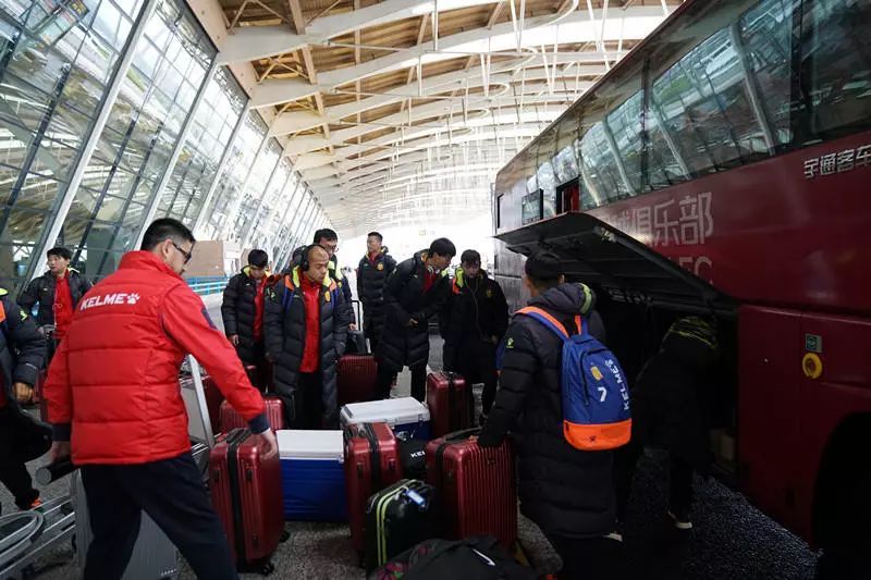 球隊(duì)抵達(dá)虹橋機(jī)場(chǎng),準(zhǔn)備出發(fā)。