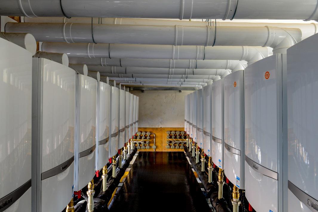 \u00A0\u00A0\u00A0\u00A0沈陽工學院供熱項目三期工程共計約20萬平方米,采用約150臺99kW威能大功率冷凝式燃氣暖浴兩用爐。其中二期工程建筑供熱面積約4萬平方米,采用威能36臺ecoTEC plus VU冷凝式燃氣暖浴兩用爐并聯(lián),在多臺冷凝爐并聯(lián)供熱提供較高供熱量的基礎(chǔ)上,實現(xiàn)進一步提升供熱量,滿足更大的采暖需求。