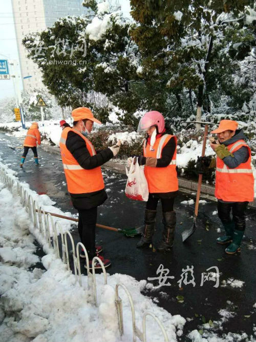新安晚報(bào)\u00A0安徽網(wǎng)\u00A0大皖客戶端訊\u00A0連日來,合肥的環(huán)衛(wèi)工人奮戰(zhàn)在抗擊冰雪的一線,鏟冰除雪,為市民掃出一條條干凈、通暢的道路。為了感謝他們的辛勞,很多合肥企業(yè)都通過各種方式向他們表達(dá)尊敬和謝意。今天早晨,新安晚報(bào)聯(lián)合合肥市十八家提供早餐的肯德基餐廳,也向全城環(huán)衛(wèi)工提供了免費(fèi)愛心早餐。