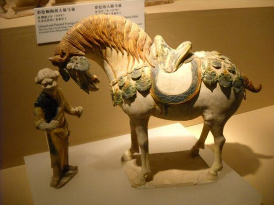 唐代三彩釉牽馬俑與陶馬陜西歷史博物館藏