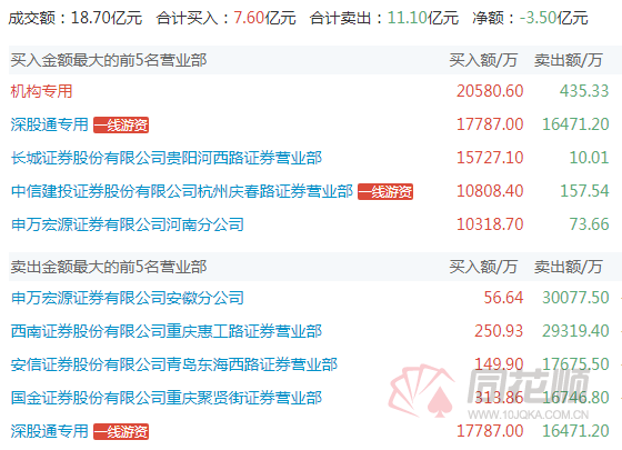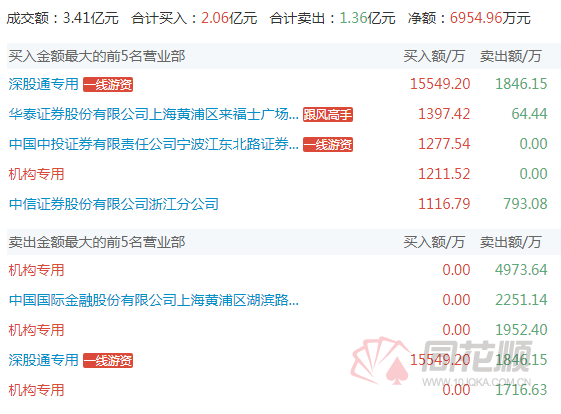 OLED龍頭股京東方A今日上午即拉高至紅盤調(diào)整,下午開盤20分鐘,大手筆買單連續(xù)不斷出現(xiàn)。該股急速放量一路攀升,收盤漲超7.7%。成交回報(bào)來看,機(jī)構(gòu)席位今日主買2.06億元;深股通席位買入1.78億賣出1.65億,差價(jià)運(yùn)作;長(zhǎng)城貴陽(yáng)河西路也買入1.57億元做多該股。申萬安徽分公司、西南重慶惠工路今日各自賣出3億元。近期在貴州茅臺(tái)示范作用下,各個(gè)白馬龍頭股接連創(chuàng)出股價(jià)新高。