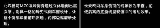 愛美之心人皆有之。當(dāng)汽車工藝日臻完善后,顏值也成了購車首要考慮因素之一。作為MPV界的顏值擔(dān)當(dāng),長安歐尚和北汽昌河M70略有不同。長安歐尚線條平直,從車頭到車尾,從車身到細(xì)節(jié),都透著簡約干練。而北汽昌河M70則線條銳利,無論是車頭的鏟型凸起保險杠,還是側(cè)身的多型凌峰設(shè)計,甚至車尾多維型面造型,都帶來豐富的層次感,讓整車看起來更硬朗逼人,大氣時尚。