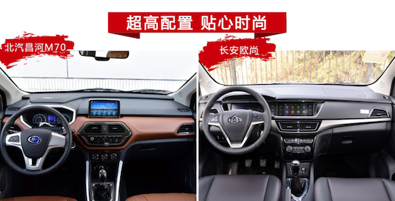 買車看配置,應(yīng)該是常識。同為自主品牌,長安歐尚和北汽昌河M70在配置不分軒輊,但如果你關(guān)注細(xì)節(jié),就會發(fā)現(xiàn)不同。長安歐尚的內(nèi)飾造型采用全黑中控臺+7英寸顯示屏+全數(shù)字化儀表盤,整體看來冷峻時尚并富有科技感。而北汽昌河M70采用黑+棕的時尚雙色配飾,儀表盤和液晶屏在信息顯示上也更加清晰。而更搶眼的是位于中控臺頂部的8英寸中控屏,不僅集成GPS、倒車影像等功能于一身,超大超清晰的屏幕顯示也讓駕駛者查看更加方便,讓行駛更加安全。