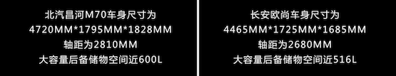 對于從旅行轎車演變而來的MPV來講,大空間是必備需求。而從數(shù)據(jù)來看,無論長、寬、高還是整體空間,乃至軸距,北汽昌河M70都比長安歐尚大了一圈。而折算下來,單后備儲物空間一項,北汽昌河M70的近600L空間就比長安歐尚的近516L大了84L。同為7座車,儲物能力更強(qiáng),宜商宜家絕對沒話說!