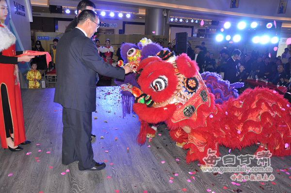甘肅石晶瓷業(yè)有限公司總經(jīng)理姜安璽為舞獅點睛