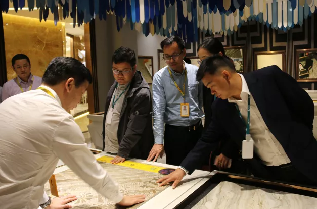 考察團在觀摩和體驗新一代柔光產(chǎn)品的質(zhì)感與舒適感后,雙方均表示,隨著人們生活水平層次的提高,無論是家裝、工裝都必然有消費層次的提高,而這種明顯的品質(zhì)提升直接反映在硬裝、軟裝上。同時雙方也表示,對居住空間舒適度的提升也是必然的結(jié)果,而亞細亞基于此而研發(fā)的55°柔光大理石,正符合時代發(fā)展的趨勢。