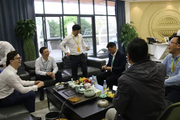 亞細亞集團總裁盧偉佳先生、亞細亞集團常務副總裁汪學鐵先生、亞細亞集團副總裁張宏輝先生與雅居樂考察團一伙暢聊,雙方就初步的合作形成初步的思路和想法。