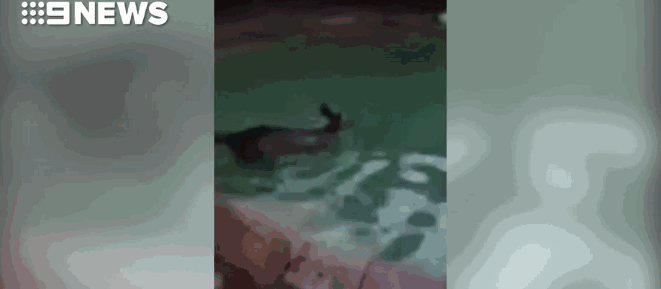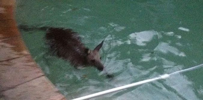 后院泳池里有一只袋鼠在游泳!