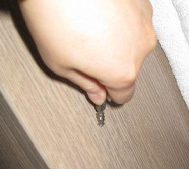 測(cè)評(píng)專員用鑰匙的尖銳面在板材表面磨劃,板采沒有任何痕跡,三聚氰銨的表面確實(shí)比較耐磨,中纖胺,PVC封邊條。