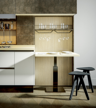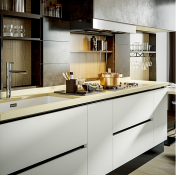 “康寶藍”,初見它,是很偶然的一次機會。在老同學(xué)新居志慶時,被它現(xiàn)代簡約的外表吸引住了。它的一字型布局結(jié)構(gòu)緊湊,卻不顯得嬌小,反而為整套小戶型廚房釋放出從容的活動動線,墻面開放柜與錯落有致的高地組合柜體一網(wǎng)打盡日常物品收納。擁有著國際主流審美的黑白灰配色,搭配云石灰紋的超晶板的細節(jié)設(shè)計,讓整體更有賞味性,巧妙地將廚電完美嵌入,融為一體,像是與生俱來一樣,時尚感撲面而來。