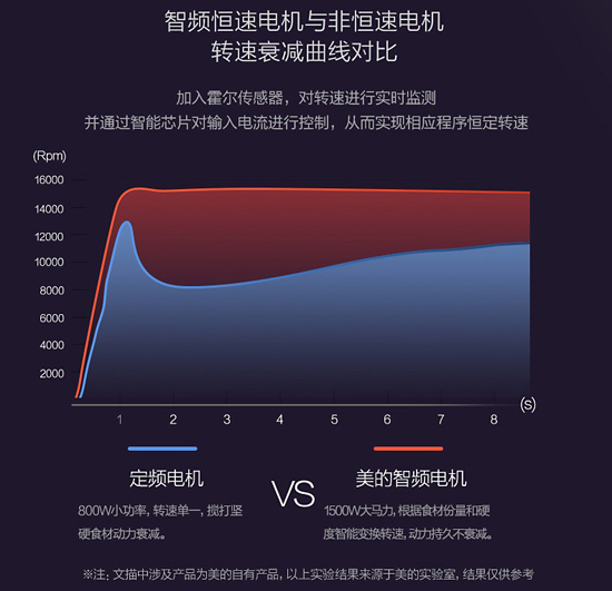 這款產(chǎn)品使用智頻破壁電機(jī),擁有1500w的強(qiáng)勁動(dòng)力,搭載德國克虜伯8葉3D破壁精鋼刀,可適用不同硬度的果蔬,更堅(jiān)固耐用。電機(jī)加入霍爾傳感器,可對轉(zhuǎn)速進(jìn)行實(shí)時(shí)監(jiān)測,并通過智能芯片對輸入電流進(jìn)行控制,對不同的食材智能匹配不同的轉(zhuǎn)速,從而實(shí)現(xiàn)了相應(yīng)程序的恒定轉(zhuǎn)速,并且使破壁工作過程更安靜。