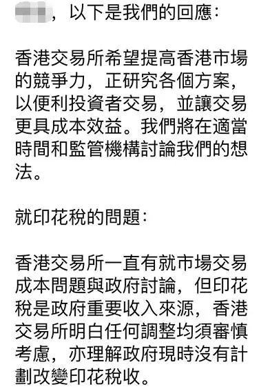 港交所真將調(diào)低印花稅?券商中國記者第一時間采訪了港交所,相關(guān)負責人給出了回應。全部回應中,“香港交易所明白任何調(diào)整均須審慎考慮,亦理解政府現(xiàn)時沒有計劃改變印花稅收”,最為關(guān)鍵。