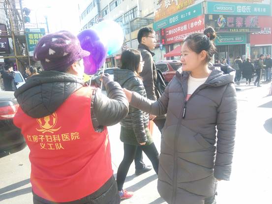 圖為路上行人夸贊青島紅房子婦科醫(yī)院義工隊愛心活動\u00A0