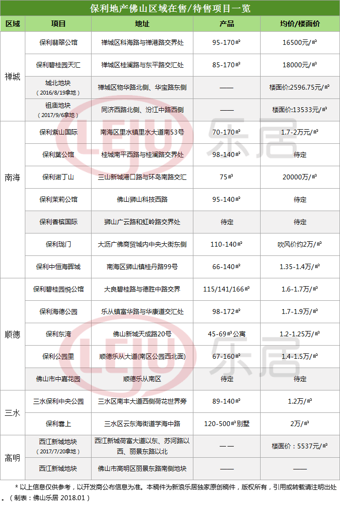 保利地產(chǎn)佛山項目分布情況(制表:呂靜萍)