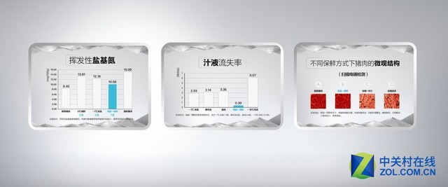 另外,肉類是一種非常考驗(yàn)冰箱制冷能力和控溫能力的食材,溫度過高,肉類很容易發(fā)生腐敗,使蛋白質(zhì)發(fā)生變質(zhì),分解成為含氮類有機(jī)物,其中揮發(fā)性鹽基氮可以反映出肉類的新鮮程度;而溫度過低又會出現(xiàn)上面我們說過的凍得太硬不容易切開或造成汁液大量流失的問題。而本次美的發(fā)布的“微晶一周鮮”冰箱能夠?qū)崿F(xiàn)肉類在好切的情況下,一周內(nèi)的菌群總數(shù)、揮發(fā)性鹽基氮表現(xiàn)非常好,真正做到7天長效保鮮。