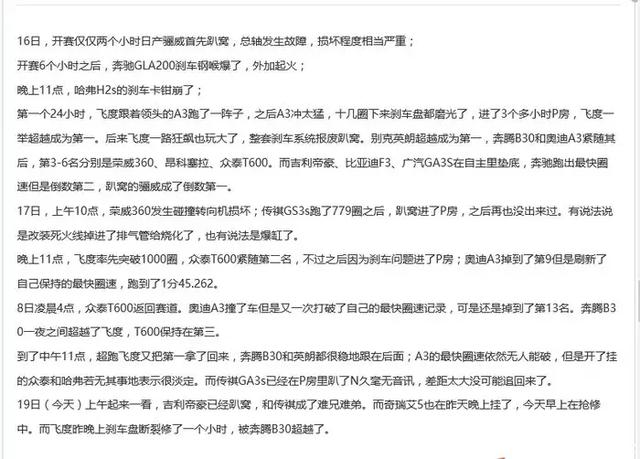至于“誰能跑第一,誰性能就最好”,我覺得這種提法沒有太多意義,只能說明車組水平穩(wěn)定,車子性能穩(wěn)定。而并不能證明第一名比第二名的耐久性能就要好多少——這就跟24小時(shí)勒芒耐力賽豐田在最后5圈輸給保時(shí)捷一樣,能證明豐田的車更差嗎?其實(shí)不能,畢竟人家前23小時(shí)55分都在領(lǐng)跑。