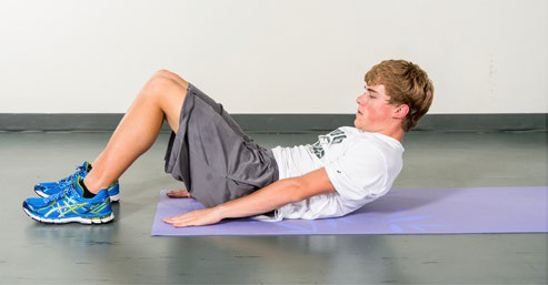 首先面朝上平躺,保持下巴收到胸前,然后讓背部與地面保持水平,收緊腹部肌肉群,然后通過卷曲軀干緩慢地抬起身體,然后柔和地躺下。