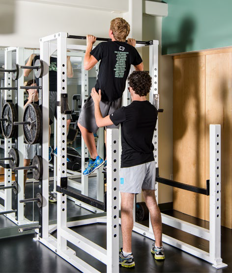 在一名同伴的幫助下,把自己的身體向上拉起,讓下巴稍微越過單杠上方。緩慢地將身體下降到起始位置。同伴應(yīng)該提供足夠的協(xié)助,讓運(yùn)動員在疲勞前至少完成12 個引體向上。