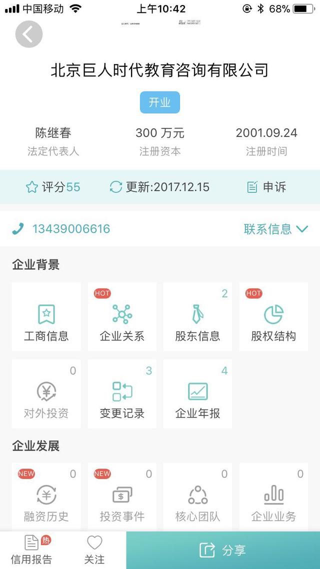 記者通過(guò)工商登記資料發(fā)現(xiàn),巨人時(shí)代教育公司成立于2001年,工商局登記的法定代表人是陳繼春,注冊(cè)資本300萬(wàn)元,目前主要經(jīng)營(yíng)自考、遠(yuǎn)程、電大等學(xué)歷教育項(xiàng)目,曾因“未按照規(guī)定期限辦理納稅申報(bào)和報(bào)送納稅材料”受到行政處罰500元。