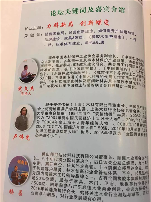本次大會(huì)主要內(nèi)容涉及:木材產(chǎn)業(yè)環(huán)保、設(shè)備工藝、木材干燥、集成材、家具、木門(mén)、地板、衛(wèi)浴家居等。高峰論壇還得到泰國(guó)、緬甸、越南、老撾、馬來(lái)西亞、印尼等橡膠木主產(chǎn)國(guó)相關(guān)商會(huì)、企業(yè)關(guān)注并參與,會(huì)上將與大家探討橡膠木產(chǎn)業(yè)標(biāo)準(zhǔn)體系建立、《橡膠木消費(fèi)指南》相關(guān)概況以及如何實(shí)現(xiàn)橡膠木產(chǎn)業(yè)一帶一路發(fā)展戰(zhàn)略!