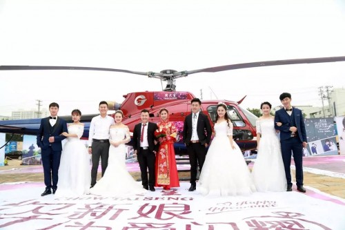 2017年8月28日七夕情人節(jié),周大生【百姿新娘,為愛閃耀】大型路演在陜西省神木幸福啟航。五對(duì)不同風(fēng)格的幸運(yùn)新人從全城征集中脫穎而出,在萬(wàn)人見證下,踏上周大生空中婚禮航班,藍(lán)天之上浪漫宣誓,攜手走入婚姻殿堂!直升機(jī)空中主題婚禮,是周大生為即將走入婚禮的顧客打造的專屬特色活動(dòng),已在蘇州、海門、南通、神木等城市成功舉辦,為幸福新人們創(chuàng)造終生難忘的浪漫體驗(yàn)與美好記憶。