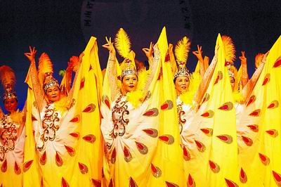 圖為省水利廳金秋美藝術(shù)團一隊表演的《金鳳朝陽》。