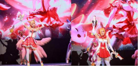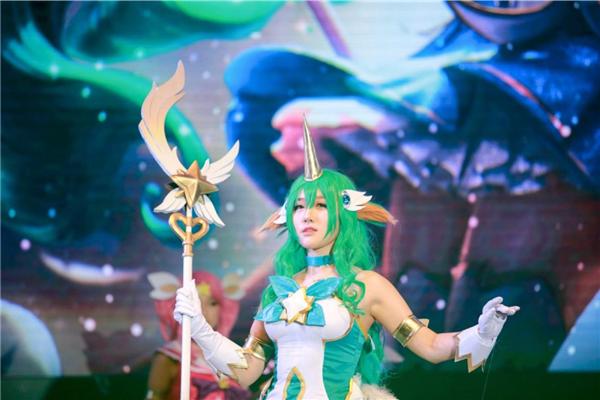 正式比賽開始之前,8位Coser伴隨著魔法少女的背景音樂緩緩走上舞臺,每位coser輪流到舞臺中央登場亮相,配合現(xiàn)場的魔幻燈光,讓現(xiàn)場的觀眾仿佛置身在現(xiàn)實的召喚師峽谷之中,精彩的Coser秀為接下來的巔峰之戰(zhàn)做好了充足的預(yù)熱。