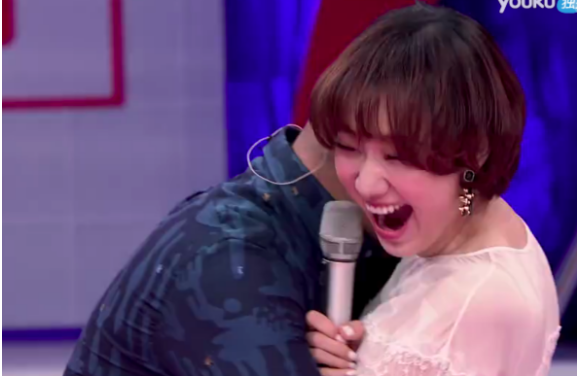 節(jié)目一開始,李詠問岳云鵬怎么樣體現(xiàn)“賤”,小岳岳立刻抱住旁邊的美女主持王冠,抱了近一分鐘不撒手,還與王冠有了臉部接觸。