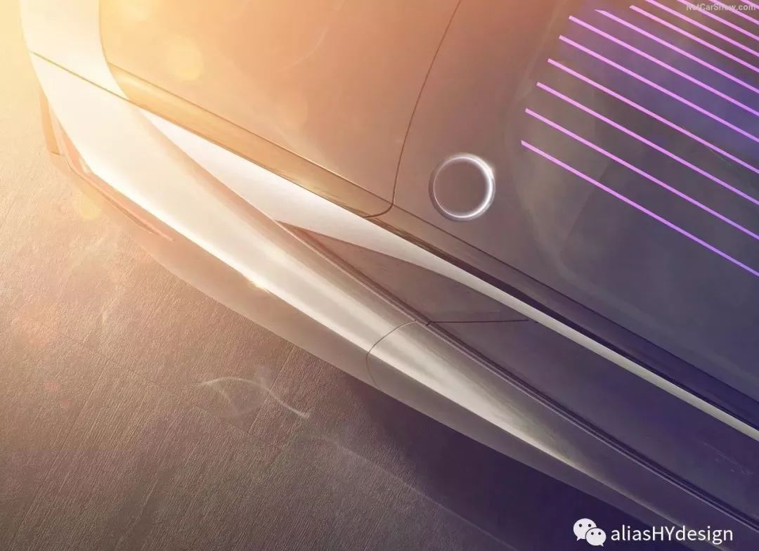 車身方面,新車采用了溜背式的跨界設計語言,通過向后延伸車身進一步降低新車風阻。此外,車頂位置配以紫色條狀裝飾,初步推測或許為裝備的太陽能電池板。車尾方面,新車尾部采用 LED 矩陣式光帶,點亮效果貫穿車輛后部,進一步詮釋了新車的優雅和動感。