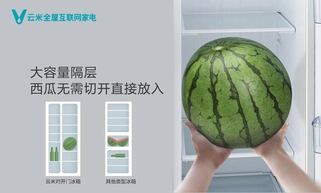 傳統的二、三門冰箱,西瓜肯定不可能整只存放,但云米互聯網智能冰箱iLive不論是存放大西瓜、大瓶啤酒、或雙層蛋糕等體積較大的物品都完全無壓力,即使一次性裝進一周的食材也輕輕松松,完全能夠滿足我們這樣雙職工無暇天天購買食材且又偏愛囤貨的家庭存放并冷藏冷凍大量食材的需求。