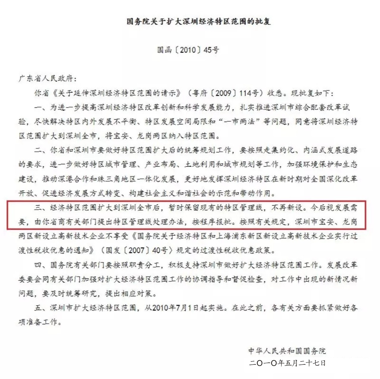 \u00A0\u00A0\u00A0\u00A0\u00A0\u00A0\u00A0導(dǎo)讀:1月15日,國(guó)務(wù)院官網(wǎng)信息公開欄發(fā)布《關(guān)于撤銷深圳經(jīng)濟(jì)特區(qū)管理線的請(qǐng)示》的批復(fù),同意撤銷深圳經(jīng)濟(jì)特區(qū)管理線。這標(biāo)志著在深圳即將迎來(lái)“改革開放40周年”之際,存在了36年的“特區(qū)管理線”(又稱“二線”)將正式完成歷史使命,特區(qū)一體化建設(shè)將進(jìn)一步提速。