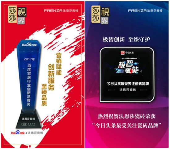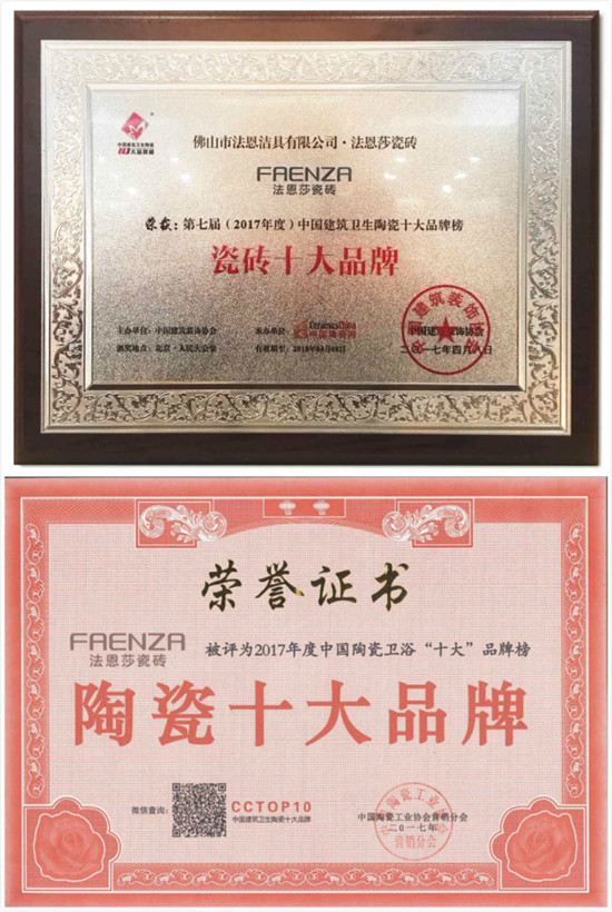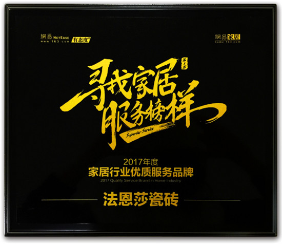 法恩莎瓷磚一直致力為廣大消費(fèi)者締造高品質(zhì)生活,打造享譽(yù)世界的“法恩莎品牌”。在2017年《中國(guó)500最具價(jià)值品牌》中,法恩莎以107.45億元躋身其中,行業(yè)地位毋容置疑!作為瓷磚行業(yè)“以匠心打造產(chǎn)品、以初心服務(wù)行業(yè)”的代表,贏得此份榮譽(yù)是對(duì)法恩莎瓷磚過(guò)往成就的褒獎(jiǎng),也為法恩莎瓷磚未來(lái)的發(fā)展增添動(dòng)力!