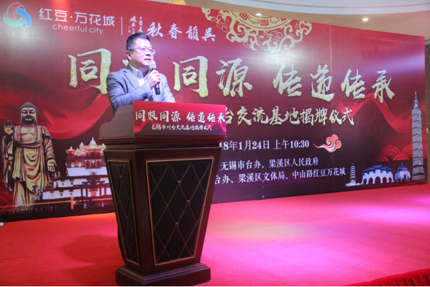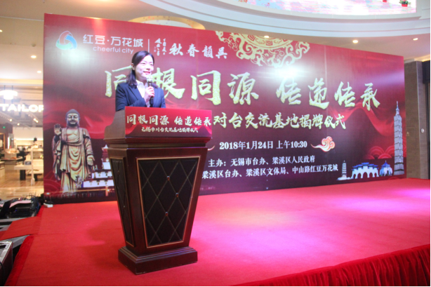 市臺辦副主任張曙峰先生宣讀了《關(guān)于設(shè)立無錫市對臺交流基地的批復(fù)》,對中山路紅豆萬花城在對臺交流工作上做出的努力給予了贊揚(yáng),并鼓勵紅豆集團(tuán)以此為契機(jī),加大、加快兩岸的經(jīng)濟(jì)發(fā)展、文化建設(shè)等方面的交流與溝通。