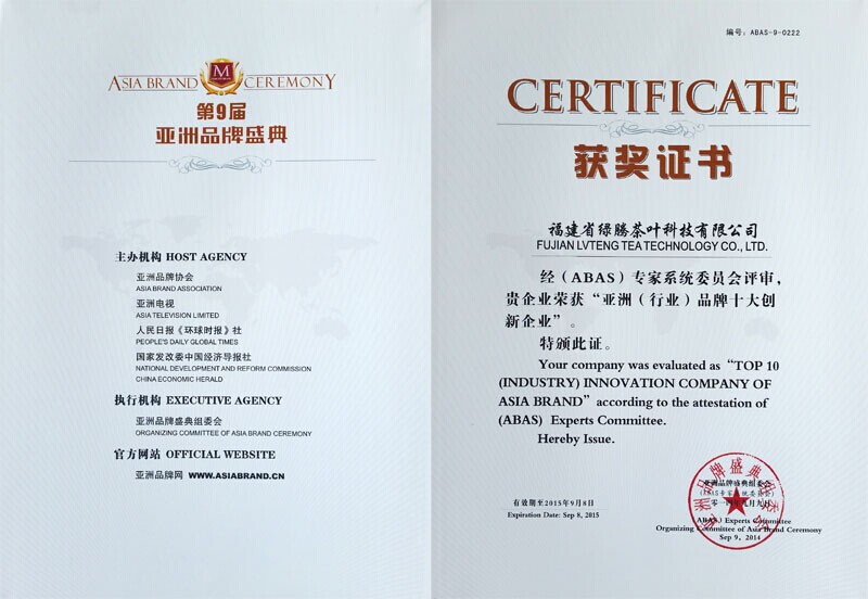 在本屆盛典上,阿里巴巴、招商銀行、恒大集團等企業(yè)獲得最新亞洲品牌500強,廣汽吉奧汽車、泰康人壽保險、綠騰茶葉科技等企業(yè)獲得亞洲(行業(yè))十大創(chuàng)新企業(yè),韓國三星、日本豐田、中國海運等企業(yè)獲得亞洲十大最影響力品牌。福建綠騰茶葉科技有限公司憑借卓越的科技實力及豐碩創(chuàng)新成果,充分贏得了由美國科特勒咨詢集團總裁科特勒,日本國際經(jīng)濟交流財團會長?山襄,經(jīng)濟日報原總編輯馮并,中日韓經(jīng)濟發(fā)展協(xié)會會長王泰平,著名經(jīng)濟學家、博士生導師李連仲等權威專家組成的評審委員會肯定,最終奪得“亞洲十大(行業(yè))創(chuàng)新企業(yè)“殊榮。