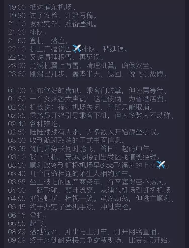 順便說一句,小編的這一天實在是“勝利大逃亡”。因為昨天也即是1月25日,小編還在上海參加“2017中國馬拉松年度盛典”,原本是搭乘晚間航班趕往福州,正點是半夜抵達(dá)。結(jié)果,從25日傍晚到26日早晨,發(fā)生了如下驚心動魄的一幕幕——