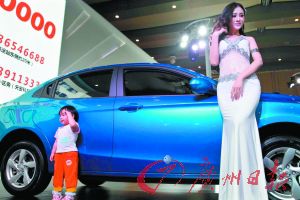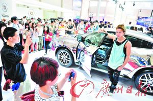 在廣日白云國際車展上,大小車模同場比拼。
