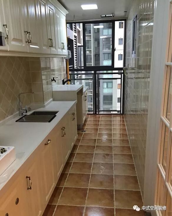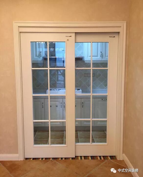 廚房方格玻璃移門,也考慮過全框的玻璃移門,后來感覺安全系數(shù)比較低,所以選擇方格款式的,過門石用的彩磚。