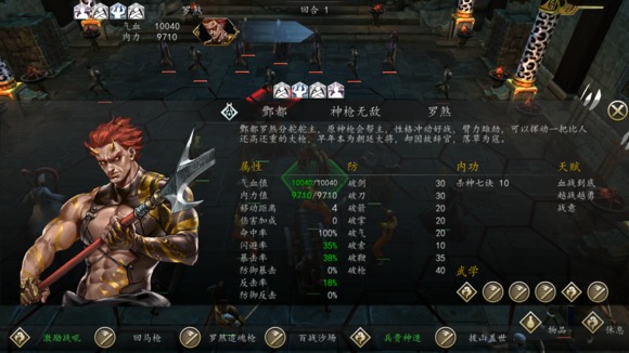 開場不需要給辟邪老人加任何debuff,判官給羅煞號令天下,羅煞一個鯉魚焙面,沖過去用黃沙百戰(zhàn),觸發(fā)須彌之境,暴擊率達(dá)到100左右。黃沙百戰(zhàn)范圍技,打一片人暴擊不難,觸發(fā)連斬。接下去很容易了,換著角度打辟邪老人,盡量不讓他反擊,因為前面暴擊他觸發(fā)以眼還眼,反擊必暴,暴擊帶氣盾,那他媽神仙也沒辦法了。當(dāng)然這種事也要看運氣人品,一般1回合內(nèi)用兩三個頭領(lǐng)搞定辟邪老人,是有很高概率無損的。我新招的十八銅人沒等級3000多血也沒死一個。另外要是羅煞內(nèi)力不夠了孟婆補個刀也差不多。這是此戰(zhàn)羅煞的狀態(tài),裝備定海神針、五色甲、武林寶典。美中不足是前期沒怎么給羅煞加內(nèi)力,可能沒辦法1回合內(nèi)連出4招。只是有時很奇怪,我孟婆暴擊了居然不觸發(fā)連斬,不知道為什么。