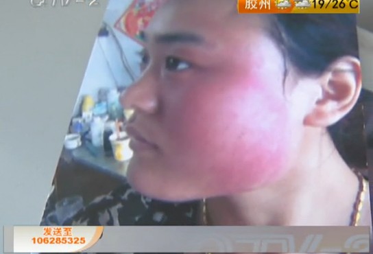 既然人家把話撂下了,小吳也安心了,趕緊回家治病,可沒想到,這臉上的毛病還真不簡單。吳小姐:臉上一直不見好,先去的膠州中心醫(yī)院,后來又去的青島山大。這個照片是過敏十多天了,之前比這個還嚴(yán)重。這些都是。當(dāng)時臉上什么感覺?又癢又刺撓。這些就是開始爆皮了,一共是爆了三層。醫(yī)生都說是過敏。不能曬,這層黑的什么時候能掉就不確定。半年是快的,有的一年兩年。
