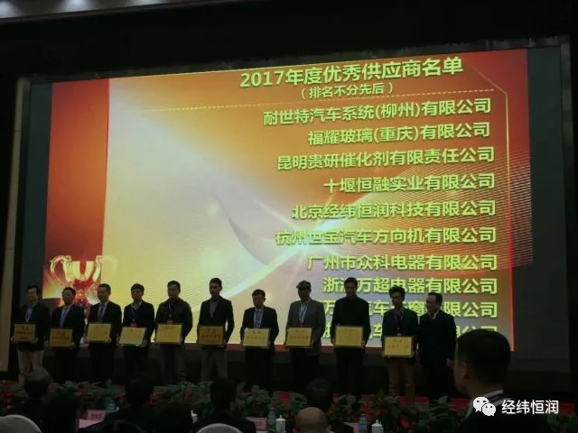 \u00A0今天上午,在廣西柳州召開的東風(fēng)柳汽2018年采購工作大會上,北京經(jīng)緯恒潤科技有限公司被東風(fēng)柳汽授予 2018-2019年度“PV戰(zhàn)略供應(yīng)商”,并榮獲2017年度“優(yōu)秀供應(yīng)商”榮譽(yù)稱號!并且,恒潤科技更是作為會上唯一一家戰(zhàn)略&優(yōu)質(zhì)供應(yīng)商受邀宣講!