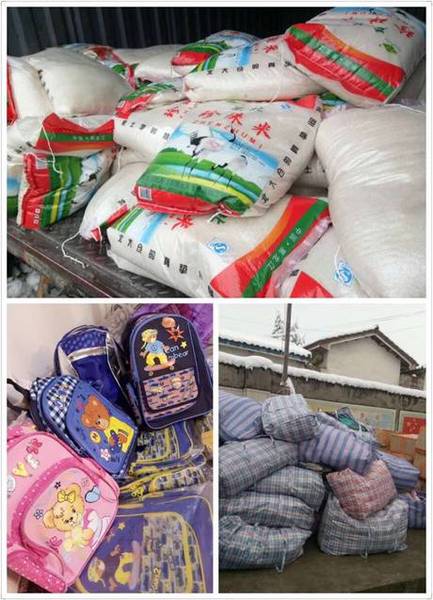 “寶貝江湖小鎮(zhèn)”給孩子們準(zhǔn)備了學(xué)習(xí)用品、書(shū)包、大米、過(guò)冬的衣服等