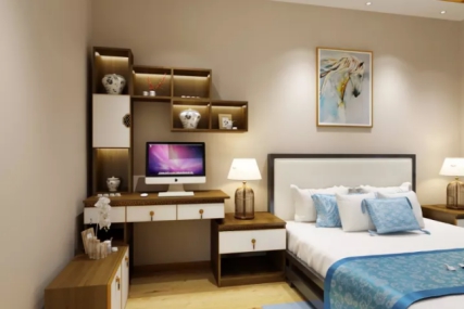 簡易的臥室書桌架落在小巧的床頭柜上,搭配錯落的小單元吊柜。形成一個實(shí)用且時尚的區(qū)域,既滿足了睡前休閑辦公的需求,又改變了傳統(tǒng)書柜的視覺疲勞。經(jīng)典的腰線點(diǎn)綴,將傳統(tǒng)文化與現(xiàn)代審美時尚完美詮釋,預(yù)留多個懸掛區(qū),根據(jù)不同衣物進(jìn)行分類。選擇用褲架抽來懸掛褲子能避免產(chǎn)生褶皺,多寶格增加了用戶小衣物等收納需求,收納高抽可以徹底解決用戶小件物品的擺放。